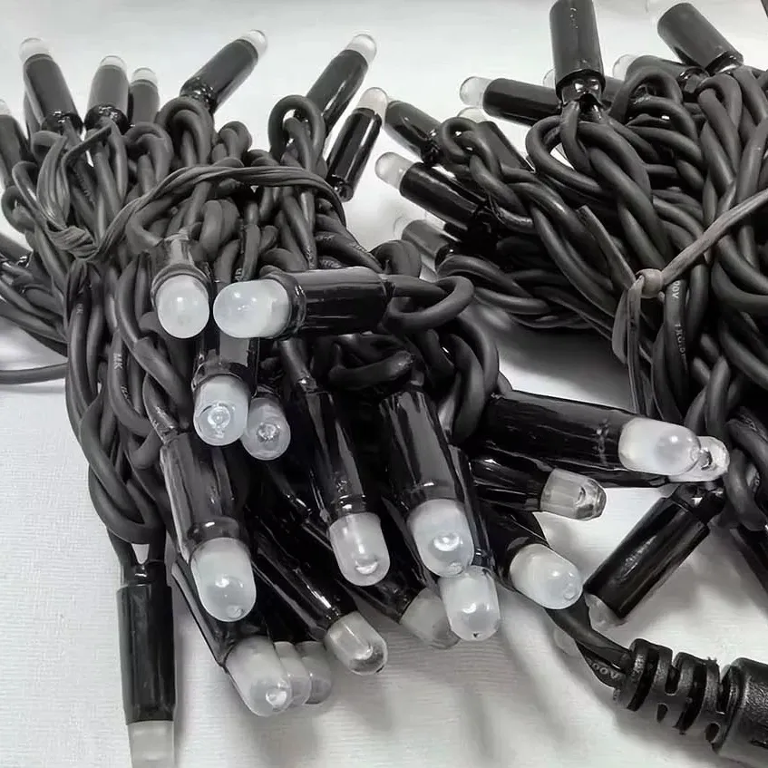 Outdoor LED string lights are widely used for festive lighting decoration, wedding events, and outdoor landscape design. These waterproof decorative string lights feature durable black rubber cables and bright RGB LED bulbs that create vibrant lighting effects for both residential and commercial environments.